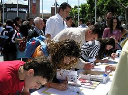 ![]() 这位祖母签名后叫孙女也来签名 |