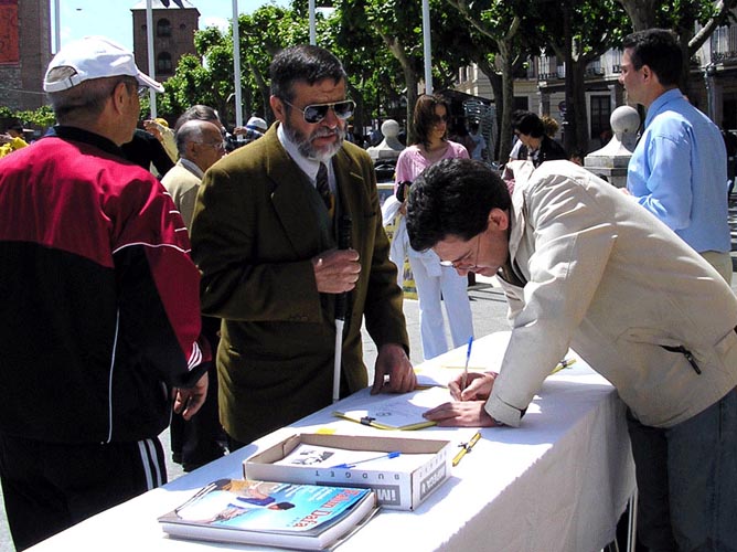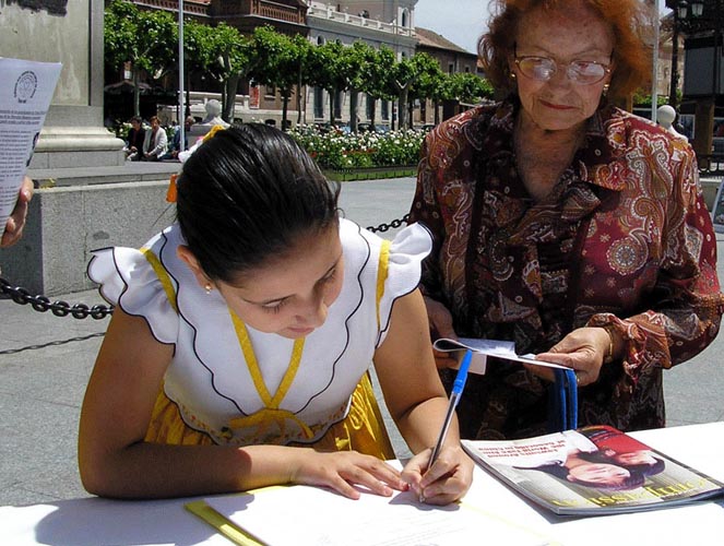 犹如阿尔卡拉城那些古朴而典雅的中世纪古老的建筑,在这座古风尚存的城市中的民众淳朴而善良。当看到法轮功学员受迫害图片,有人落了泪,有的当即拿出钱包要捐款支援,当听说不收捐款,便急切的问以什么方式才能帮助法轮功学员……