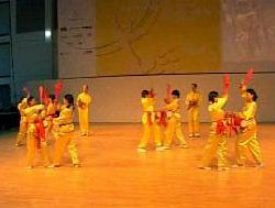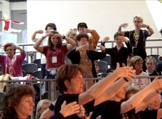![]() 功法演示 | ![]() 观众纷纷学炼法轮功 |