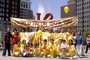 报导说,费城地区的法轮功学员与世界各地的学员一道庆祝这一节日。法轮功功法动作缓慢,有点类似太极,你可以在世界各地的公园里看到法轮功学员在炼功。
