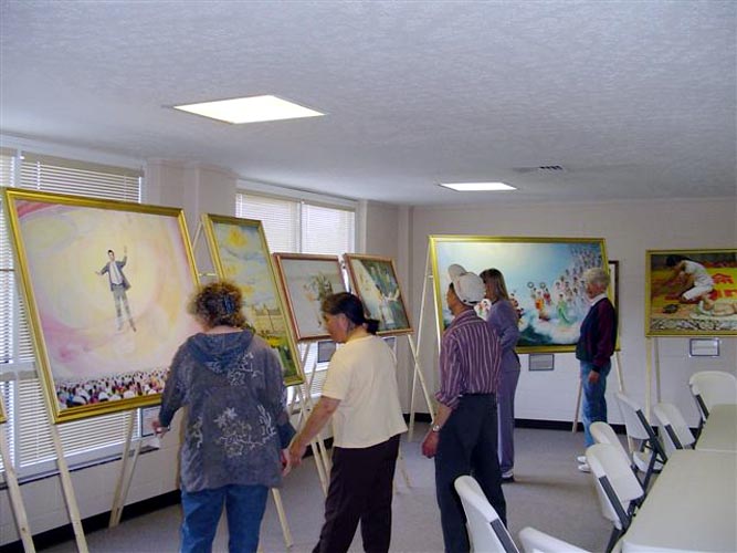 直到法轮功学员们到达劳伦斯艺术中心开始架起画架,才知道在艺术中心的大厅里只能放四幅中到小型的画(原以为可以放7到10幅不限篇幅的)。很快,观众在留言簿上的留言就显示出,艺术中心的大厅放四幅画或者图书馆地下一层放十九幅并没有很大关系,作品的信息传达给了成百上千的观众。例如,一位女士在艺术中心的留言簿上写到“这个美术作品展告诉了我们,什么是法轮大法,以及在中国的法轮功学员正在经受着什么样的残酷迫害。对于生活在西方文化中的人们,了解到其它的迫害如此重要,因为这使其它组织可以帮助制止迫害。”