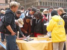 报导最后说,翠丝和其他学员向所有遇到的人讲述中国法轮功学员受到的迫害。法轮功学员潘洪义说中共害怕法轮功的一个原因是因为法轮功讲“真”。潘和翠丝都相信在不断的努力下,中共会衰亡,法轮功最终会更受欢迎。