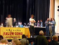 博览会上,主办人为法轮功准备了两场讲座。一位参加讲座的女士告诉学员她很长时间一直想学法轮功,但每次总是有其它事情发生,导致她不能如愿。今天本来打算与她的朋友参加另外一个讲座,但她这次下决心参加法轮功的讲座。她表示她喜欢法轮功的功法。还有一位参加讲座的妇女告诉学员,她从镇压一开始就听说了法轮功,但她一直想弄明白原因。参加了讲座后,她说她的这个心结终于解开了。在明白了法轮功是指导人们向高层次修炼的功法,镇压是完全不能容忍的之后,她的心完全轻松了下来。