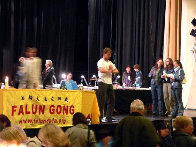 一位博览会的工作人员特地来到展位告诉学员:“我曾经在别的博览会上看到过法轮功,镇压是完全错误的!我给《世界时报》报社(一家挪威销售量最大的报纸)写了读者来信,信中指出挪威不能将与中国的贸易放在人权之上。”