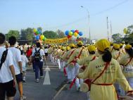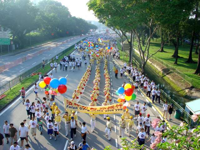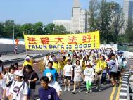 今年“大竞走”的宣传词是“走向新生”(Get A New Life)。而法轮功修炼者的“新生”正是源于法轮功。在经历了沧桑困苦、上下求索之后,这一群修炼者向注视着他们的各界民众展示着法轮功的美好与“真善忍”的巨大感召力。“法轮功与你同行!”从容、自信、祥和,新加坡的大法弟子们在万里晴空下向前走去。