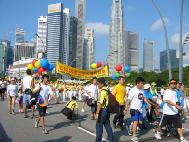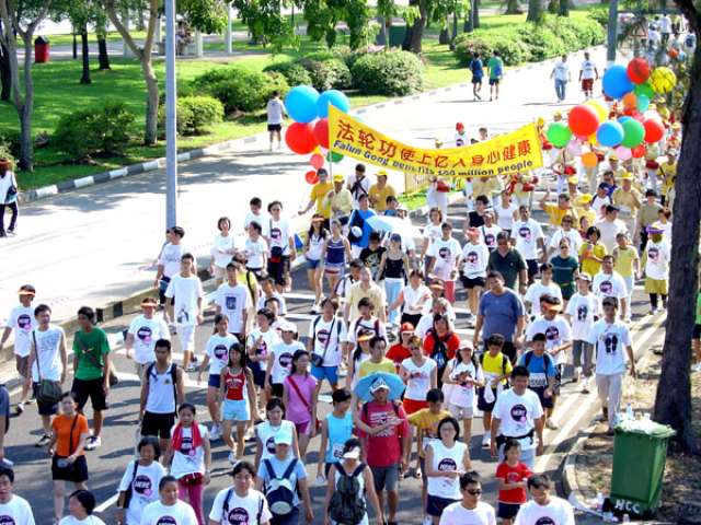 【明慧网2005年5月23日】2005年5月22日星期日清晨,新加坡的年度大型群众活动“大竞走”(Big Walk)开始了。七点半钟,数万名热衷健身运动的人士在国家体育场外排着长队依次出发,气氛热烈。
