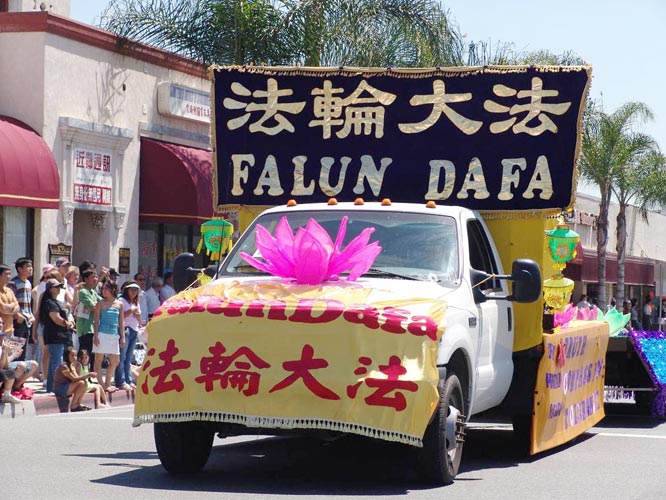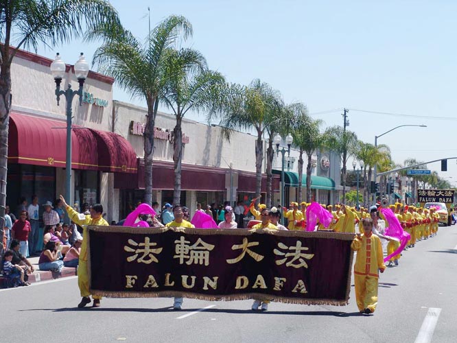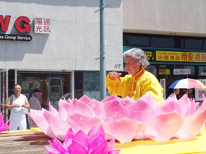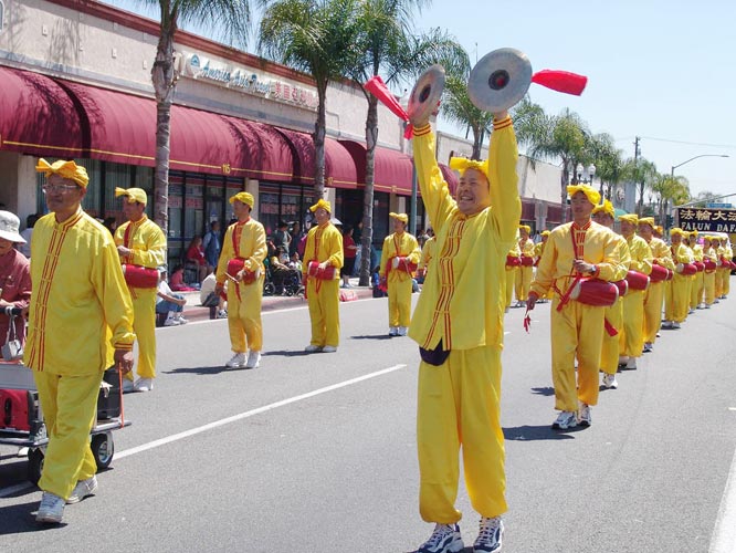 法轮功学员是第二年参加这一传统的庆祝游行。圣地亚哥的学员不辞辛劳,驱车两个小时赶来与蒙市民众同庆。法轮功学员的腰鼓队、仙女舞、花车和功法表演为游行队伍增添了色彩,并获得花车第一名和鼓队第一名。