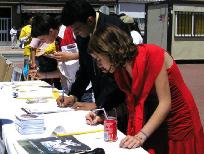 我们的活动是在火车站门口的空场上。从活动一开始,火车站门口的两位保安就一直在远远的注视着。学员走过去将传单递给他们。不知什么时候,他们也出现在签字桌前认真的在表格上签了自己的名字。一位保安说:按照规定,他们在值勤时是不能参与和介入工作以外的任何活动的,但是他认为作为一个人,不能面对这种灭绝人性的屠杀保持沉默,他有责任尽自己一份心力呼吁停止迫害。