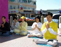 学员们在火车站入口处的空场上刚刚摆好图片,一辆巡逻警车就驶近停靠在路边,两位警察下车查问发生了什么事情。学员上前向警察讲述在中国发生的对法轮功的迫害并解释我们将在这里举办的活动。听了学员的讲述后,警察说:“21世纪决不应发生群体灭绝。你们可以继续你们的活动,虽然这样的活动一般来说是需要提前申请的,但你们的情况确实是特殊的。”