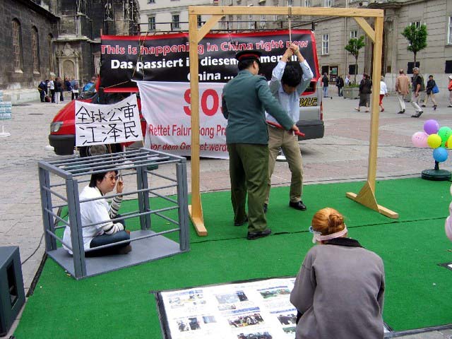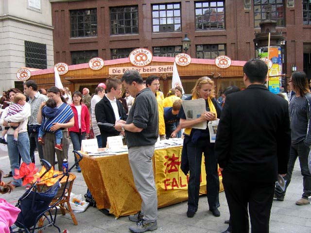 当日的天气很温暖,许多人前往维也纳市中心。学员们举办了六个小时的庆祝活动。由于法轮功在中国遭受迫害,奥地利学员们不仅表达了他们得法的喜悦,也通过反酷刑展揭露在中国的这场残酷的迫害,呼吁人们共同努力制止这种对人权的严重践踏。