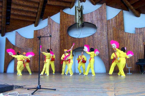 法会交流后法轮功学员们在总统办公厅附近的马霖公园举办了庆祝法会的音乐会。大法弟子表演了舞蹈、歌唱、钢琴独奏、诗朗诵和腰鼓舞。整个演出带给人们纯净和谐的感受,参观演出的广大观众都为能看到如此精彩的演出而感动。