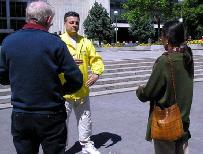 学员们在发传单讲真象时,发现不少人都听说过法轮功,有的是在健康博览会上认识法轮功的;有的是在报纸或电视上看到有关报道的;也有的是听朋友说的,而且其中有不少人知道法轮功是一门对身心有益的功法,却在中国遭到迫害。有的人还特意找到学员问如何才能帮助在中国遭受迫害的法轮功学员们。