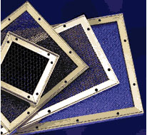 下图是铝合金框封制的金属丝网屏蔽窗、门、框,四周预留沟槽、孔,便于互相接地、和铰合。用于组装式电磁屏蔽室。
