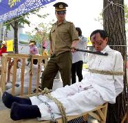 路透社5月30日报导了当天在南韩举行的反酷刑展,报导说,法轮功学员在汉城中部展示了中共用来迫害学员的酷刑手段。