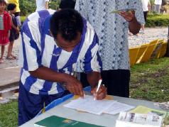 这些善良的市民,在了解真象之后,都纷纷签名支持法轮功。尤其一群为数十多人的女学院生,每个都义不容辞的签上自己的名字。由于签名的人很多,以致学员们所准备的征签纸都签满了而必须在纸背后划线,继续让大家签名,但是最终还是不足以应付众多想签名支持正义的人士。