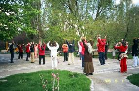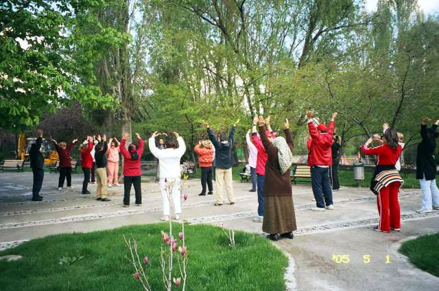 清晨,SHOWTV电视台的记者采访了早上在公园里炼功的大法弟子,并于当天晚上在新闻联播时间播放了采访节目。节目中,部份大法弟子谈了自己的修炼体会,并介绍了法轮功功法。联系电视台的土耳其人大法弟子说:她半年前没炼功时55岁,现在她看起来像45岁,浑身有使不完的劲儿。她希望让全土耳其的人都来学大法,请通过电视把这个消息告诉我们国家的所有人。
