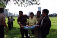【明慧网2005年5月4日】2005年4月24日(星期日)早上,马来西亚法轮功学员在首都吉隆坡的蒂蒂旺莎公园举行反酷刑展讲真象活动。蒂蒂旺莎公园位于吉隆坡的中心地带,景色优美,是晨运及休闲人士的最爱,每到假日,人潮众多。一直以来,法轮功学员每天都在这里炼功兼讲真象,帮助人们了解法轮功的美好以及在中国大陆江氏集团对法轮功的残酷迫害。