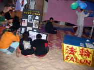 洪法活动期间,有很多的有缘人前来学功。有一个有缘人和学员一起度过五六个小时,他说他很喜欢中国的唐朝文化。他说法轮功是他一直在寻找的东西,见到我们他十分的激动,不仅当场买了书、学了功,而且表示下周开始会参加集体炼功。