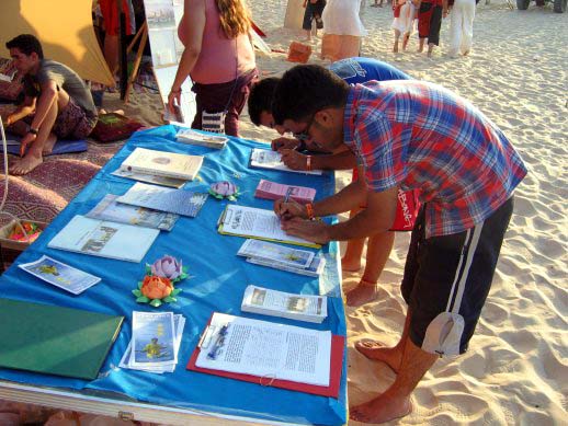 这些善良的市民,在了解真象之后,都纷纷签名支持法轮功。尤其一群为数十多人的女学院生,每个都义不容辞的签上自己的名字。由于签名的人很多,以致学员们所准备的征签纸都签满了而必须在纸背后划线,继续让大家签名,但是最终还是不足以应付众多想签名支持正义的人士。