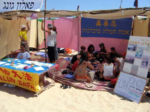 有些民众对气功很感兴趣,想知道其间的关系,也有基督教的人士来参观,想了解法轮大法的宇宙观与思想,学员们一一为其详细解说,现场气氛十分容洽。