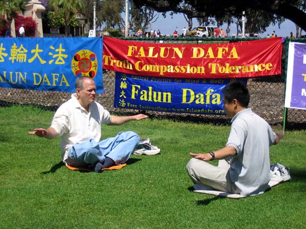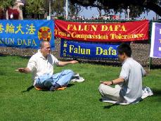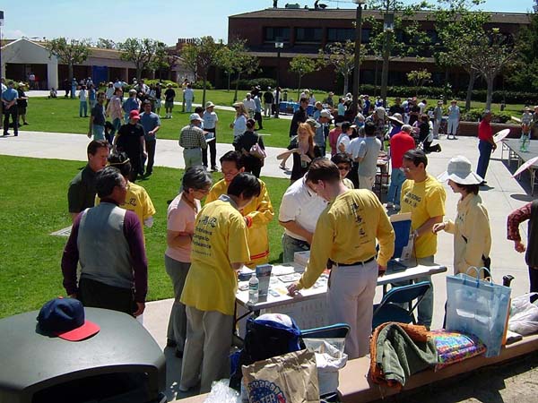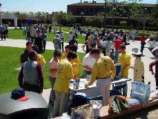 【明慧网2005年5月4日】2005年4月30日上午,“洛杉矶地区世界太极气功日”在橙县尔湾山谷大学举行,约3百多各族裔人士参加。洛杉矶法轮功学员如往年一样参与此年度盛会,希望在这个强身健体宣扬中华国粹的活动中,将法轮功的美好介绍给大家。