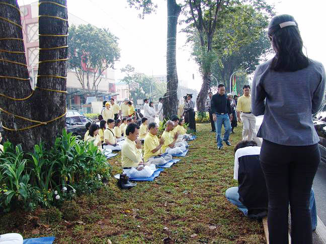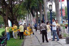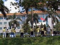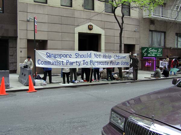 ![]() 法轮功学员在新加坡领事馆前请愿 |