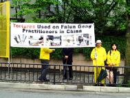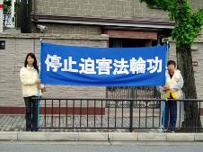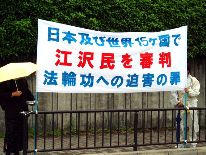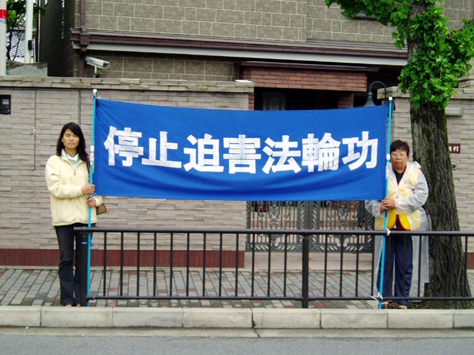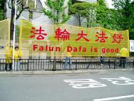 日本法轮功学员为了尽快停止发生在中国的对法轮功学员的迫害,呼吁更多的人们关注中国的法轮功学员,6日到7日在会场附近举行了呼吁停止迫害的活动。法轮功学员在各国外交大臣的必经之路上打起了“停止迫害法轮功”,“法轮大法好”,“真、善、忍”,“15个国家正在起诉江××”的横幅以及揭露迫害的图片等。许多路过的人都停下来观看,询问。并对发生在21世纪的这种迫害感到不可思议。更多的人通过学员的讲解了解了中国这场迫害的真象,并对法轮功学员表示支持。
