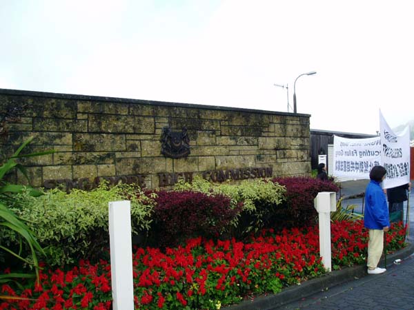 新西兰法轮功学员在新加坡专员府前请愿(图)