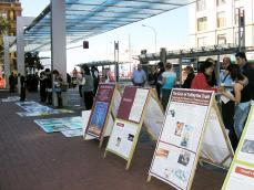 2005年5月7日,新西兰奥克兰法轮功学员在奥克兰市中心举办反酷刑展讲真象活动,向人们揭露发生在中国对法轮功的残酷迫害。