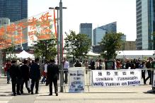 因为有十几个中国企业代表团也参加汽车工业大会,所以时不时的有一些中国人阅读展板。有一组中国人快步来到展板前,像是有备而来,他们看了一会儿展板,当学员把法轮功真象报纸递给他们时,一个中国人问:“你认识王云坤吗?”学员回答:“不认识,但这并不重要……”这个中国人说:“那你们为什么要法办王云坤?”学员告诉他:“因为在吉林省已经核实有301位法轮功学员被迫害致死,王云坤作为吉林省的省委书记不负有罪责吗?”学员顺势问道:“请问你认不认识王云坤?”他说:“我跟他很熟。”学员说:“那请你带个口信给他,叫他赶快停止迫害法轮功。”他又问:“你知道法轮功是什么吗?”学员告诉他:“简单的说,法轮功就是教导人遵循真善忍的原则去做一个好人。”