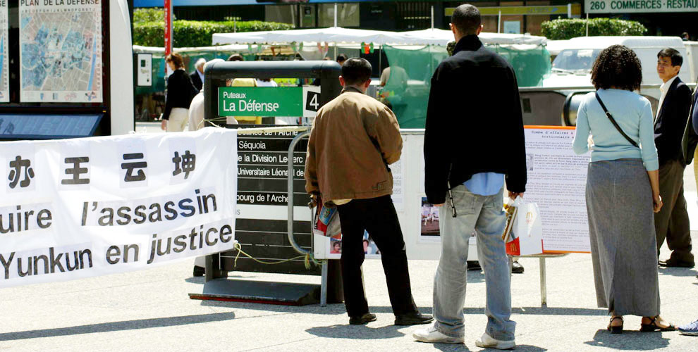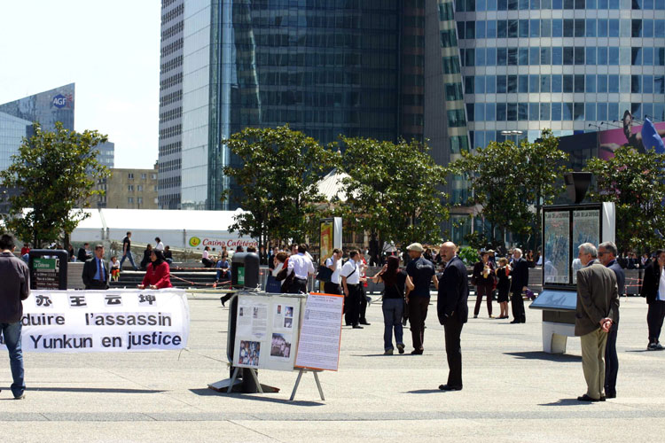 二零零五年六月九日,一个国际性的汽车工业大会(Automotive Meetings)在位于巴黎La Défense 的国家工业与技术中心(CNIT)举行。法国法轮功学员得知积极参与和推动迫害法轮功的中共吉林省委书记王云坤将出席这次会议,在即日一早便赶到La Défense的CNIT前的广场上举办讲真象活动。法轮功学员打出“法轮大法好”和“法办王云坤”的中、法文横幅,并派发起诉王云坤的新闻公告及大法的真象传单,让法国工商界的中高级职员了解他们的贸易伙伴中竟有虐杀法轮功学员的同谋犯。
