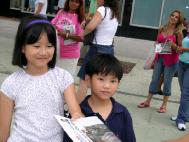 5. 一对老夫妇骑车经过这里,当了解了真象,掏出钱要捐款,还有不少人提出要捐款。当知道法轮功不接受捐款,他们可以从相关的网站获得信息来捐款营救孤儿,一个男士建议我们可以准备好信封和邮票,打印好寄往地址,他们就可以直接捐款了。