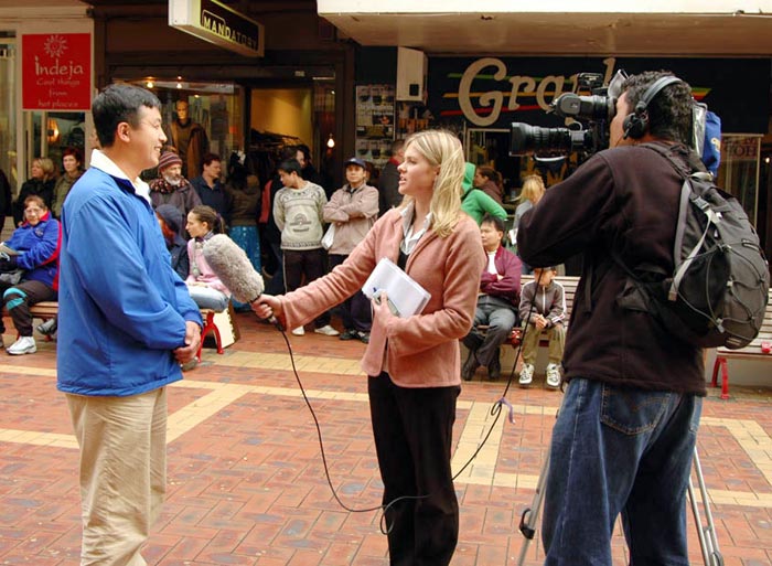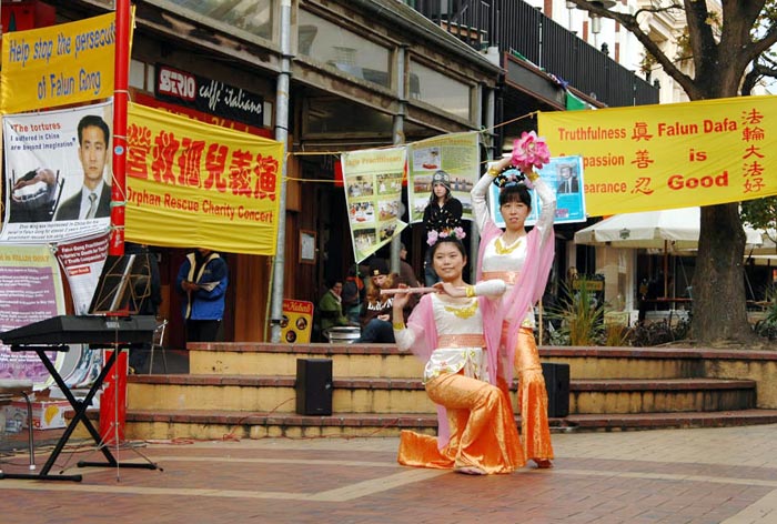 【明慧网2005年6月13日】2005年6月11日,新西兰法轮功学员在首都惠灵顿市中心古巴街举办义演营救在中国因中共