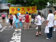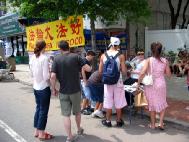 有的民众,对中共把劳教所的奴工产品出售到美国,表示非常气愤,并表示要尽全力阻止中共这一行为。有的人表示要学功;大部份民众非常高兴的接过真象资料;并有许多人签名支持反迫害,还出现了多次排队等签名的场景。活动结束时,白布上密密麻麻签满名。