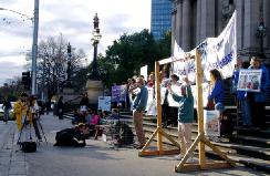 ![]() 法轮功学员在集会上 | ![]() 媒体采访 |