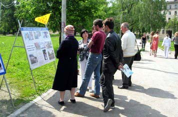 很多路人被活动所吸引,停下来认真的观看展板,并问一些问题。当看到那些残酷的迫害场面,人们善良的一面受到震撼,他们很多人都问:“为什么在和平时期居然还能发生这样的事情?为什么在中国这样好的功法遭到迫害呢?”很多人在展板前久久不愿离去,听学员讲述法轮大法真象,并表示支持法轮功学员们反迫害的努力。
