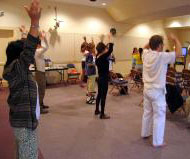 下午学员们在市中心的公共图书馆举办了教功讲座,人们踊跃参加,学习了五套功法并了解了在中国发生的迫害