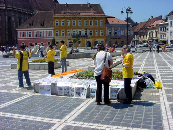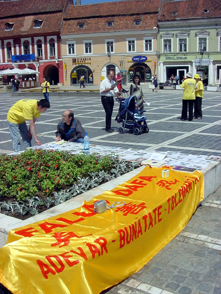 ![]() 学员们在广场上发放真象资料 | ![]() 学员们在广场上发放真象资料 | ![]() 人们纷纷停下来了解真象 |