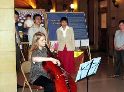 ![]() 画展开幕式 | ![]() 为画展演奏 |