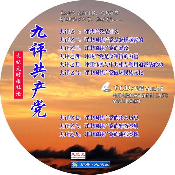 我从明慧网的: 参考资料:《九评》VCD光碟标签封面下载的光盘封面,这个设计效果很好。