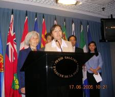 2005年6月17日,加拿大法轮大法学会会长李迅同7名法轮功学员在国会召开的新闻发布会,公开讲述在加拿大境内、外受到的中共间谍监控、骚扰、威胁、歧视和恐吓。