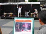 2005年6月10日,来自欧洲各国以及美国、澳洲、台湾多个国家的法轮功学员在瑞典首都斯德哥尔摩市中心举办真人模拟酷刑演示,以揭露中共江氏集团对修炼“真善忍”的法轮功学员长达六年之久的残酷迫害。
