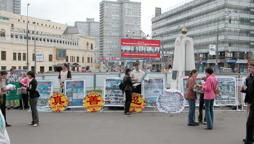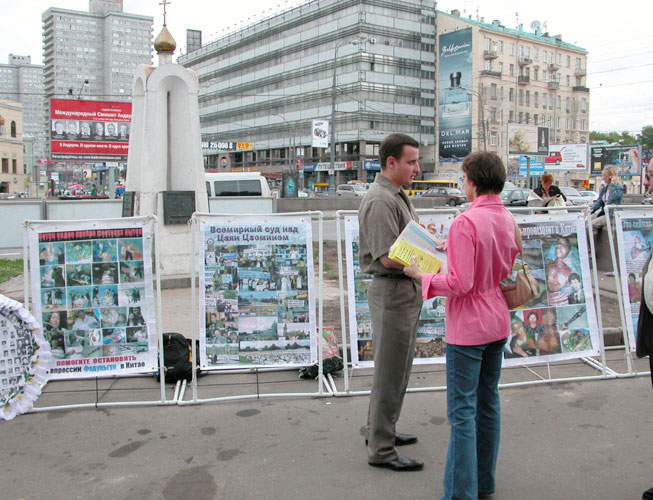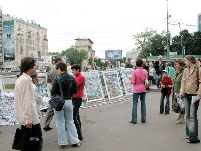 莫斯科阿尔巴特广场上展示法轮功真象(图)