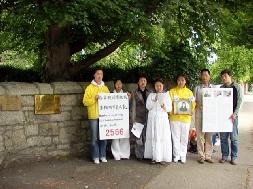 2005年6月21日中午十二时整,部份爱尔兰法轮功学员集会在爱尔兰首都――都柏林中领馆前,强烈谴责并要求调查高蓉蓉被虐杀一案,严惩真凶。