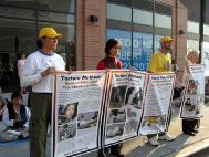 2005年6月22日中午,休士顿部份法轮功学员在中领馆前集会,强烈谴责中共酷刑虐杀中国大陆法轮功学员高蓉蓉的残酷暴行,引起了路人的关注。