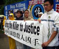 抗议中共蓄意谋杀 大纽约地区学员中领馆前集会(图)