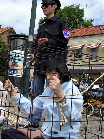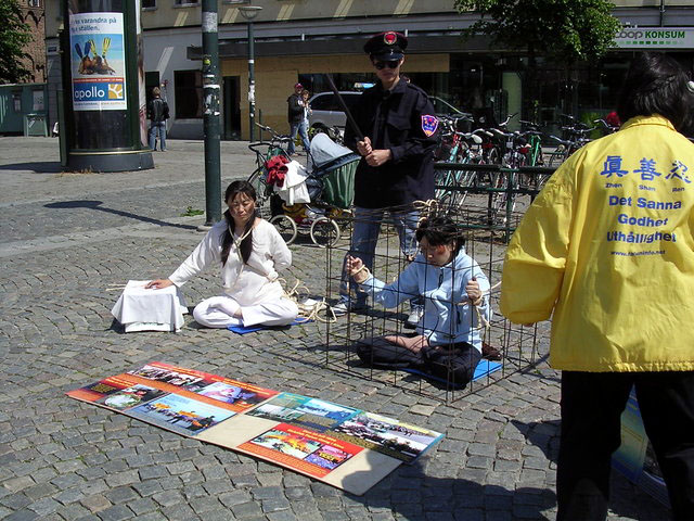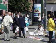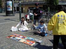 【明慧网2005年6月23日】2005年6月4日,部份来自瑞典南部城市马尔默(malmoe)、隆德(lund)及丹麦哥本哈根的法轮功学员,在隆德市的莫顿广场(Medan)举办了一场反酷刑展,以揭露中共对法轮功的残酷迫害。活动开始前,天空阴云密布,并落下小雨点儿,学员们一边布置展板,一边发正念,不出20分钟,太阳从新显露出笑脸,学员们也露出了会心的微笑。