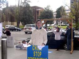 2005年6月23日中午,中国驻德国法兰克福总领事馆开张,中德人权人士和法轮功学员在马路对面進行了请愿抗议活动,提醒参加开张仪式的中国及德国官员关注中国目前仍受到关押的十万多名政治犯和被迫害的法轮功学员。