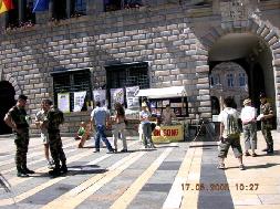2005年6月17日至19日,来自德国、瑞士及法国南部格勒诺布尔市的法轮功学员,与法国的佛朗仕•孔泰大区贝桑松市法轮功学员,一起在贝桑松市的市中心繁华地带,举行了为期三天的洪法及讲真象活动。