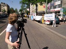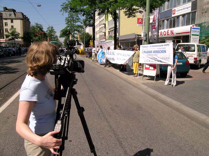 来自海德堡的法轮功学员科普尔先生也希望借这个机会告诉人们在中国正在发生的对法轮功学员的迫害。据最新消息,中国法轮功学员高蓉蓉继被毁容之后近日又被“610”系统迫害致死。据明慧报道,2004年5月初,沈阳龙山教养院对高蓉蓉的面部电击六、七个小时,导致严重毁容。高蓉蓉被电击毁容的照片一年前在海外曝光,引起了人们极大的震惊和国际社会的关注。高的案例被列入“2004年联合国关于中国迫害法轮功的人权报告”的头条案例。曝光事件使中共非常恼怒,于2005年3 月6日将高蓉蓉再次绑架和关押。经过三个多月的摧残,高蓉蓉于6月16日因内脏衰竭死亡。在此之前,有关高蓉蓉的消息被严密封锁。